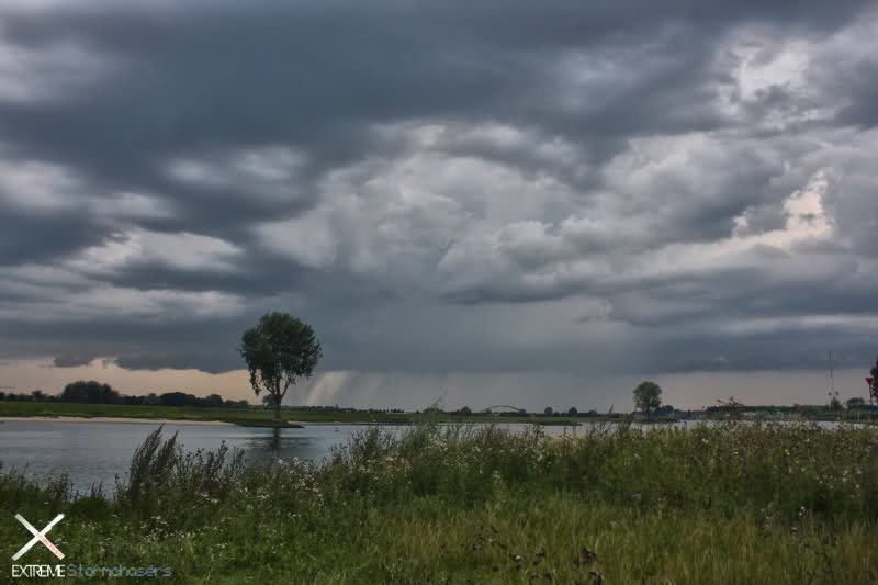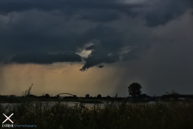 Eenmaal aangekomen bij het Lek begonnen we fotos te schieten. Want het zag er best wel imposant uit allemaal. Opeens zien we allemaal tegelijk de Fractus omhoog schieten En in de verte kon je de Bomen al zien zwiepen. Dat nog niet gezegd te hebben ineens een flinke wind. Hard genoeg om al ons materiaal omver te blazen, Zelfs mijn zware laptop werd van t dak af geduwd!! Mensen die de livestream bekeken hebben dit live mee kunnen maken!!